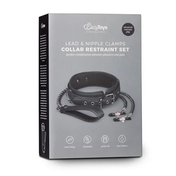 Mit diesem Halsband mit Nippelklemmen können sie Ihre Partnerin dominieren und das Gefühl der Kontrolle genießen. Das Halsband aus Leder macht einen luxuriösen Eindruck. Es ist einstellbar, so dass es auf jeden Fall passt. Das Halsband und die Klemmen sind über Metallketten miteinander verbunden. Mit diesem Halsband ist Ihnen eine aufregende und aufreizende Erfahrung mit SM-Spielen gewiss.