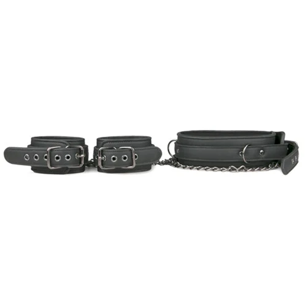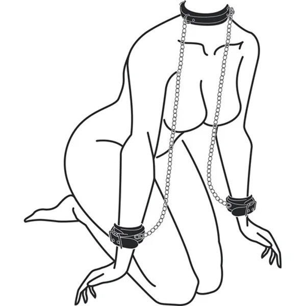 Sie haben die Kontrolle wenn Ihr/e Devote/r dieses fantastische Bondage-Set trägt! Es besteht aus einem Halsband mit Handgelenkmanschetten, die leicht mit Hilfe der Klippverschlüsse voneinander getrennt werden können. Die Spielzeuge sind aus stabilem Kunstleder, das mit Schaum ausgekleidet ist, wodurch sie haltbar und komfortabel zu tragen sind. Das Halsband ist verstellbar von 45 bis 58 cm und die Handgelenkmanschetten sind verstellbar von 11 bis 28 cm. Beide Ketten haben eine Länge von 40 cm. Kombinieren Sie dieses spezielle Set mit anderen Spielzeugen, wie z.B. Fußgelenkmanschetten, Ballknebel, Paddel und Nippelklemmen und verschaffen Sie sich so eine besonders aufregende Erfahrung.