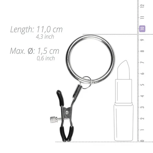 Die Metallnippelklemmen aus der Kollektion von EasyToys sind ein Muss für alle, die eine Herausforderung lieben Die Klemmen sind aus stabilem Metall und haben weiche Schutzkappen, sodass sie nicht abrutschen und nicht die Haut zerkratzen. Auf der Unterseite der Klammern befinden sich Metallringe, mit denen Sie die Klammern an einem Bondage-Seil, einer Bondage-Kette oder an Gurtzeug zum Umschnallen befestigen können. Durch die Schrauben an den Seiten können Sie ganz einfach den Druck der Klammern an Ihren Brustwarzen regulieren.