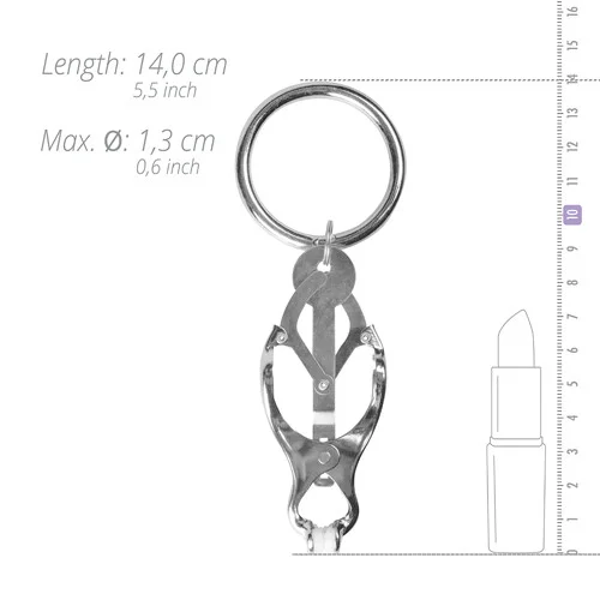Diese Metallnippelklemmen aus der Kollektion von EasyToys werden Ihre empfindlichsten Stellen stimulieren. Die japanischen Kleeklammern sind aus robustem und strapazierfähigem Metall und haben an den Spitzen weiche Schutzkappen. Es gibt an der Unterseite große Metallringe, damit können Sie an den Klemmen leicht ein Bondage-Seil oder Kette befestigen. Das macht die Nippelklemmen in den Sammlungen der Bondage-Enthusiasten unverzichtbar.